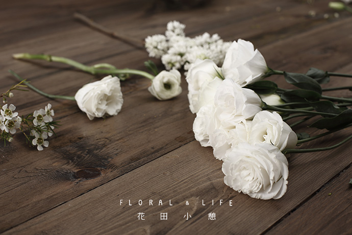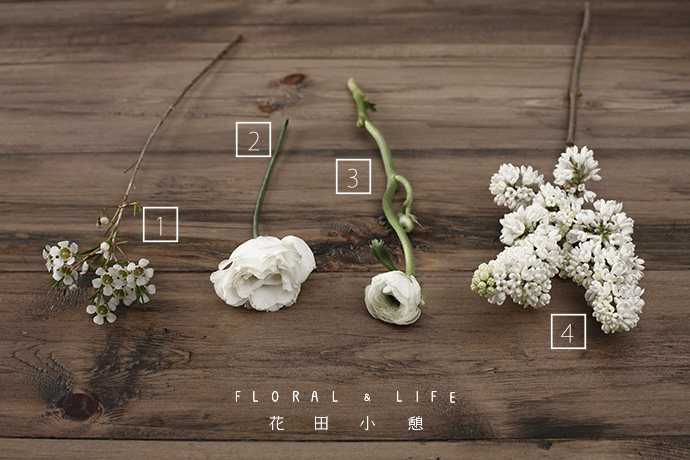 为了方便大家在花材搭配时的选择,花田小憩特设香味等级图谱,供大家在学习过程中了解更多植物的属性,以方便作品选择更适合的空间位置陈列。将准备好的花材进行分类。