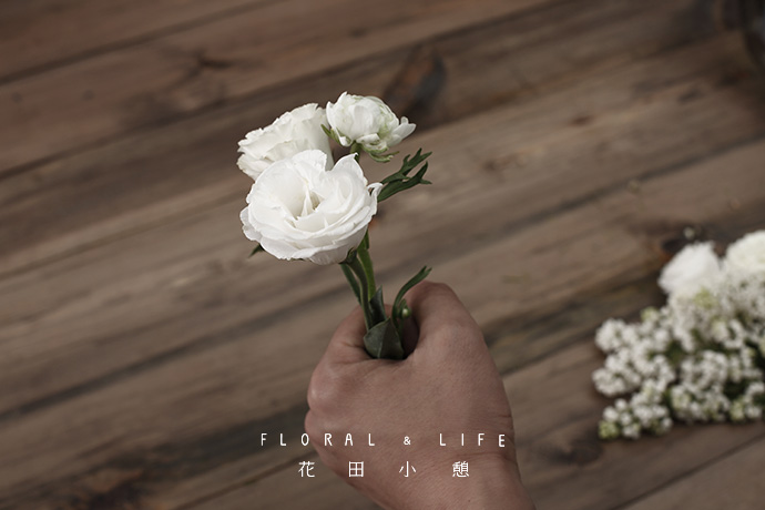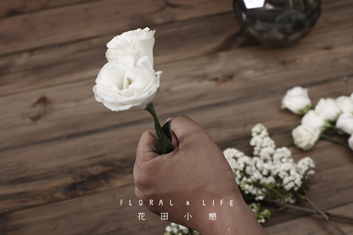1.在增加花材的过程中,根部需要以顺时针螺旋技巧进行制作,这样能保持花材之间固定度,呈现作品整体造型感和设计感。