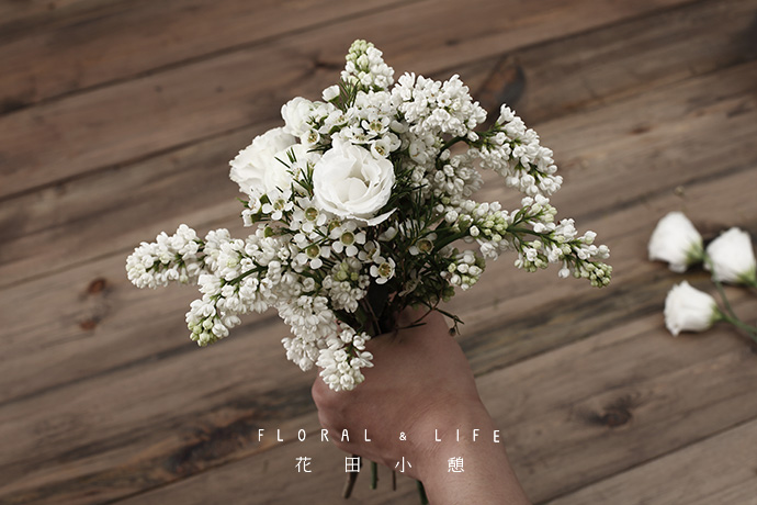 以龙胆为中心,在四周加入丁香花。