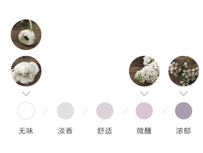 为了方便大家在花材搭配时的选择,花田小憩特设香味等级图谱,供大家在学习过程中了解更多植物的属性,以方便作品选择更适合的空间位置陈列。