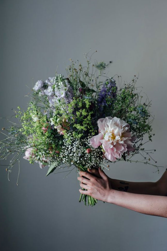 这种花束根茎简单地捆绑在一起,裸露着根茎的花束,点缀着花朵。一般戴在新娘、花童女孩或者伴娘的头上。
