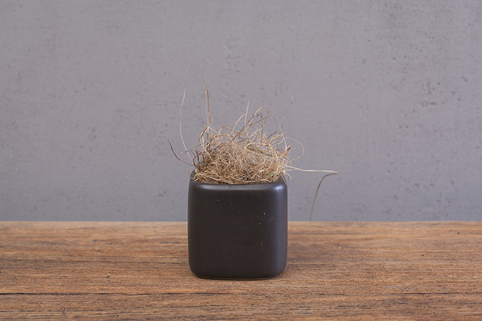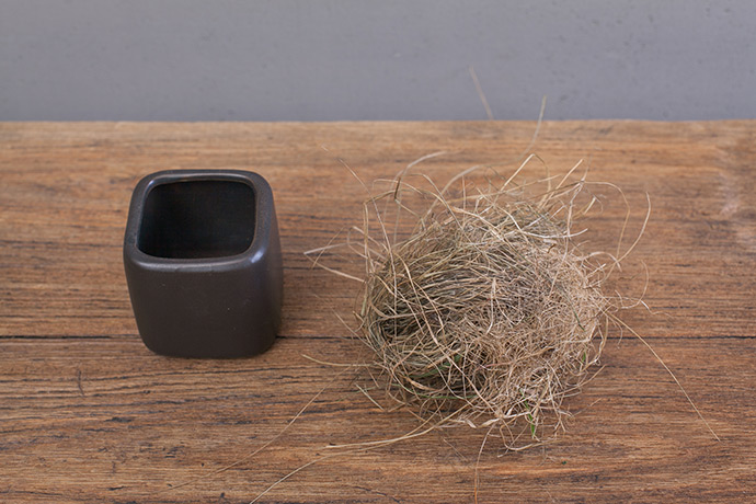 将团好的枯草放入花器中,密度稍微大一些。更便于花材的固定。