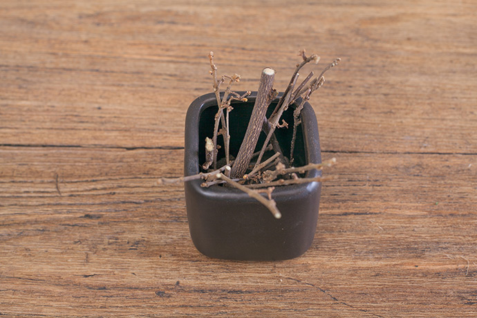 将木棍放入花器中,占满但不拥挤为宜。