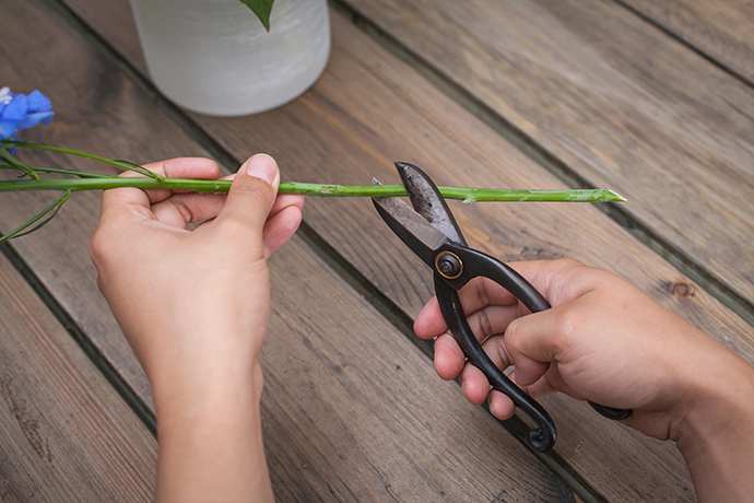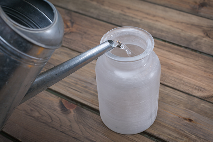选取干净圆润的花瓶作为花器,并向其中注入2