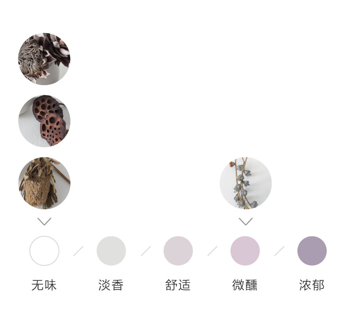 为了方便大家在花材搭配时的选择,花田小憩特设香味等级图谱,供大家在学习过程中了解更多植物的属性,以方便作品选择更适合的空间位置陈列。