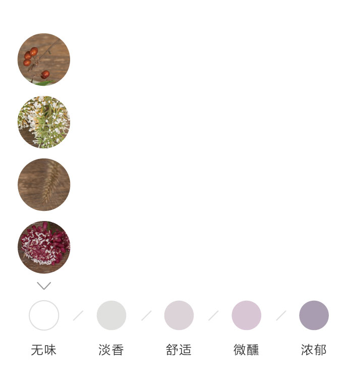 为了方便大家在花材搭配时的选择,花田小憩特设香味等级图谱,供大家在学习过程中了解更多植物的属性,以方便作品选择更适合的空间位置陈列。