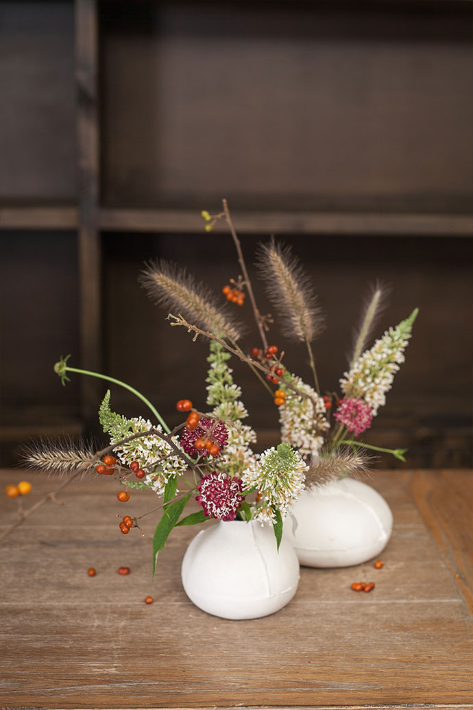 将山棘斜插入花器中,圆圆的橙红色的果子,格外讨人欢喜,就像它的寓意一样,美好而圆满。