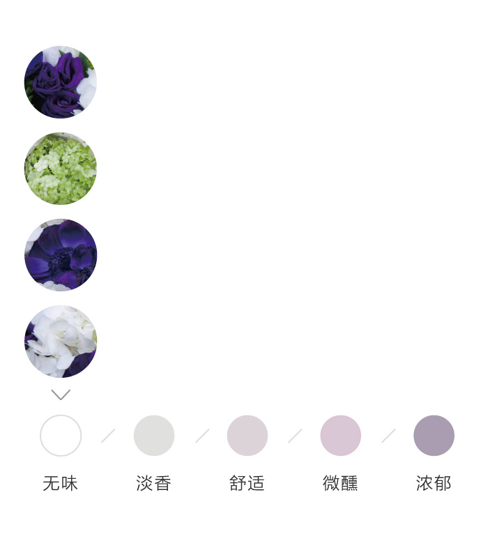 为了方便大家在花材搭配时的选择,花田小憩特设香味等级图谱,供大家在学习过程中了解更多植物的属性,以方便作品选择更适合的空间位置陈列。