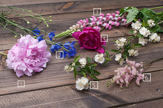 以三角形为构图方式用芍药花搭建造型的最初造型架构.