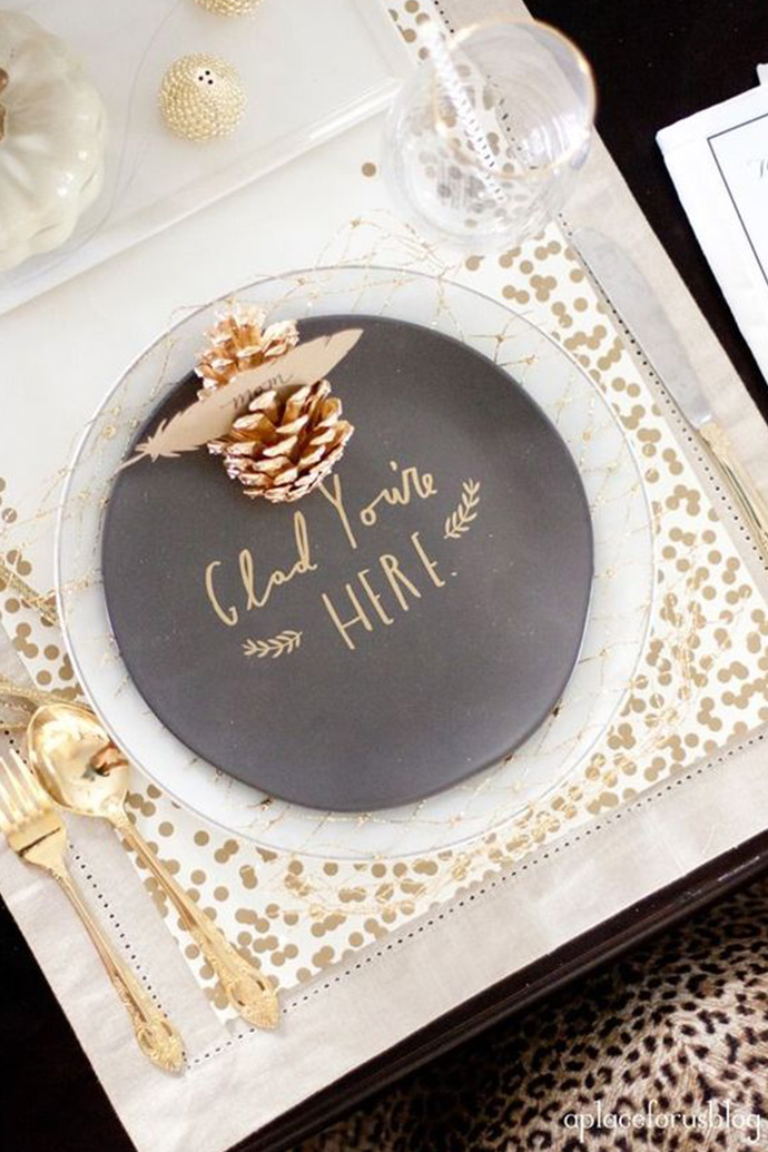 金色是富贵华丽的颜色,但在家居、餐台中一直都是点缀的色彩。到了秋天,你就可以不再吝啬金色的笔墨,多一些金色的装饰也不会显得艳俗,反而会得到富丽堂皇的绝妙效果。