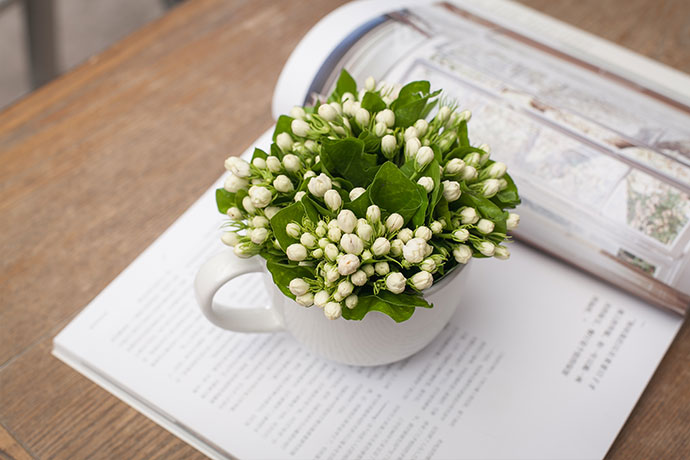 一杯清雅茉莉香,搭配一本好书,品味生活就是这么简单。独品一杯幽香,沉思一段过往,静候茉莉花开绽放,花香萦绕伴我身旁。