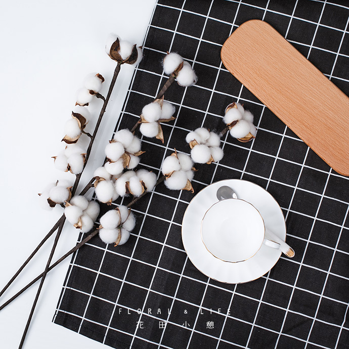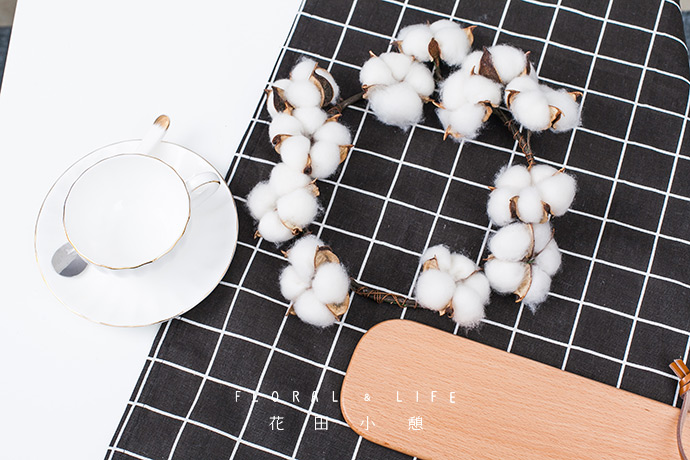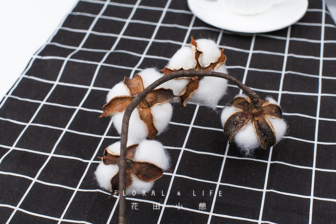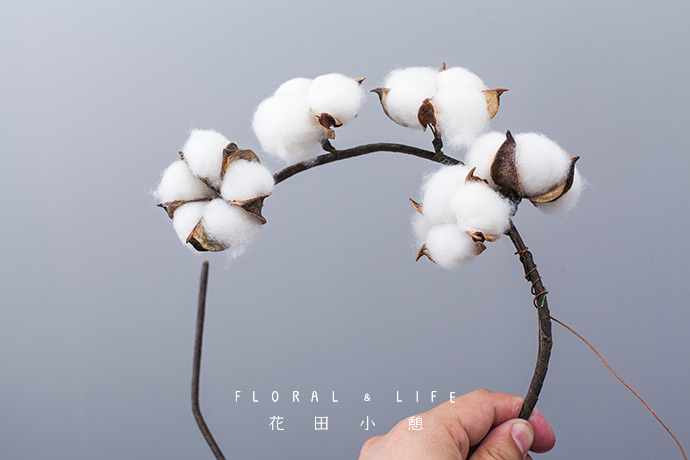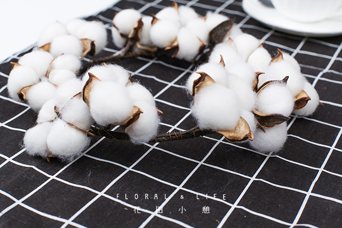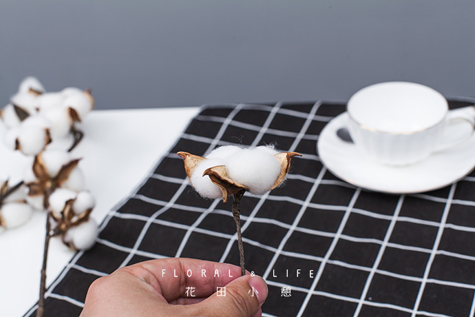 将其余两支棉花的花朵裁剪下来,茎部长约7cm-10cm。