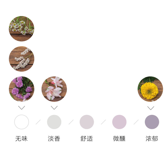 为了方便大家在花材搭配时的选择,花田小憩特设香味等级图谱,供大家在学习过程中了解更多植物的属性,以方便作品选择更适合的空间位置陈列。
