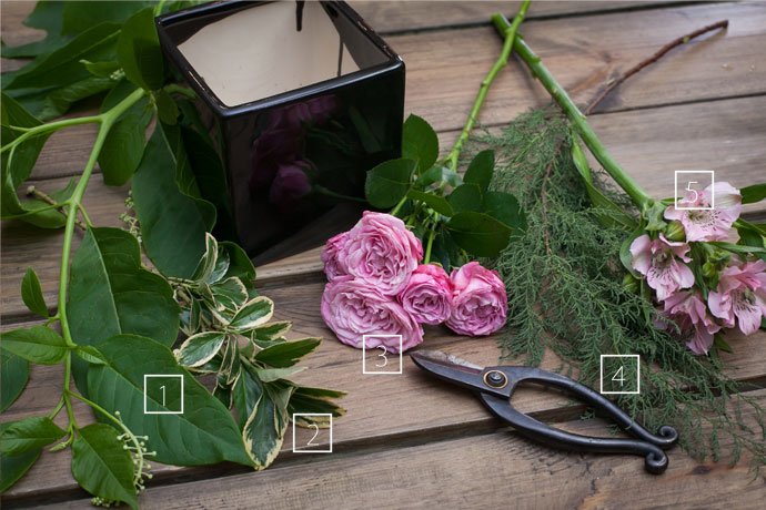 为了方便大家在花材搭配时的选择,花田小憩特设香味等级图谱,供大家在学习过程中了解更多植物的属性,以方便作品选择更适合的空间位置陈列。取一个颜色较深的花器,将切好的花泥放置在花器中。