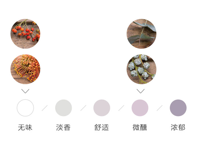 为了方便大家在花材搭配时的选择,花田小憩特设香味等级图谱,供大家在学习过程中了解更多植物的属性,以方便作品选择更适合的空间位置陈列。