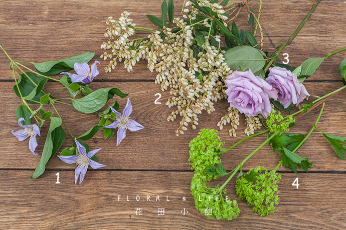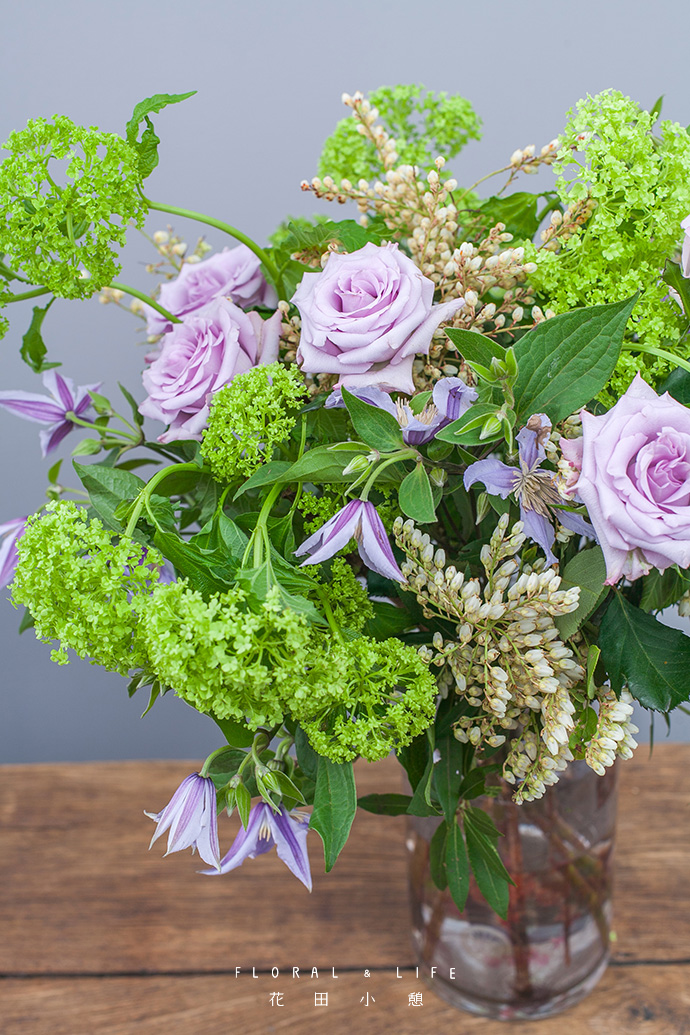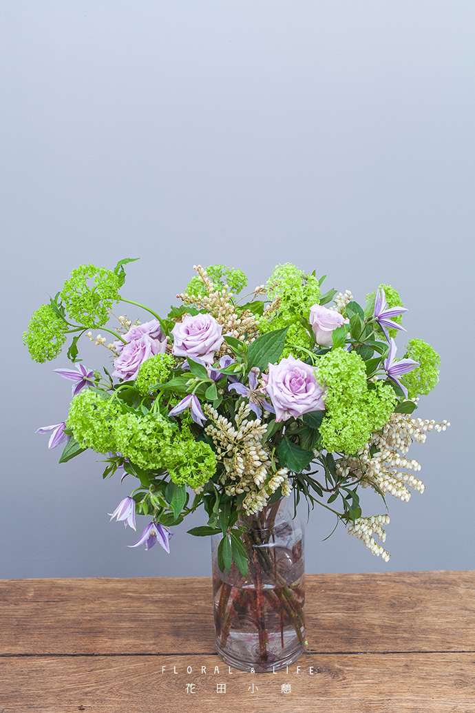 铁线莲插入花器中,清新的色彩,席卷着春日的气息。