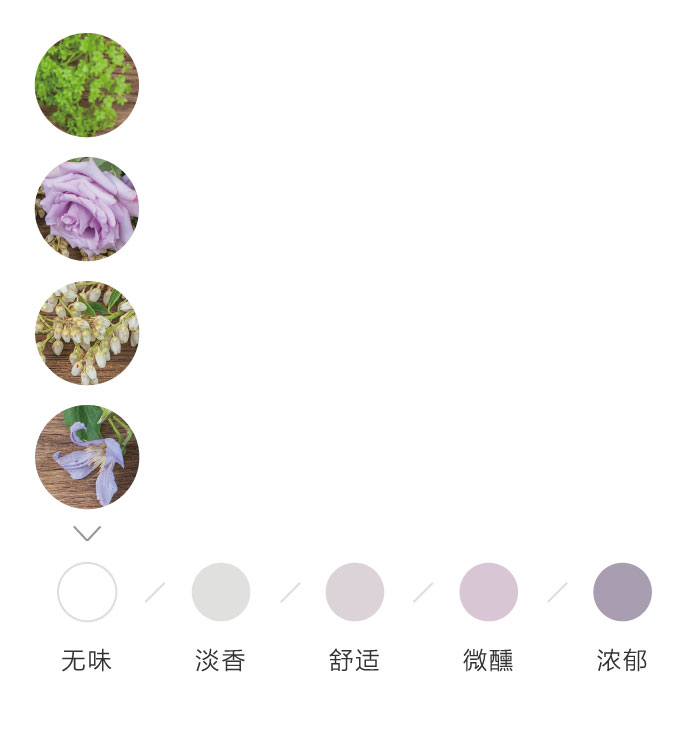 为了方便大家在花材搭配时的选择,花田小憩APP特设香味等级图谱,供大家在学习过程中了解更多植物的属性,以方便作品选择更适合的空间位置陈列。