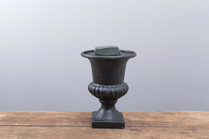 准备一个适合的花器,加入花泥去棱角去边,增加插花时的稳定性.