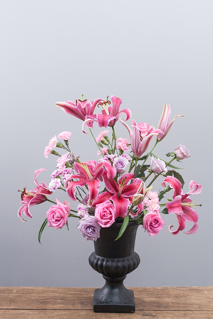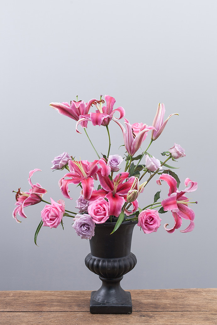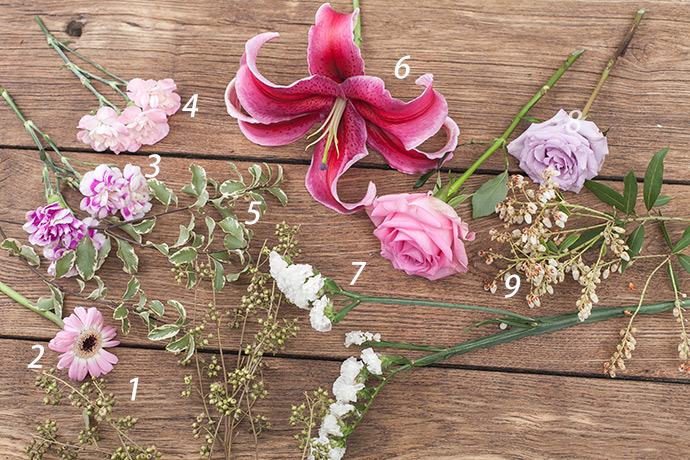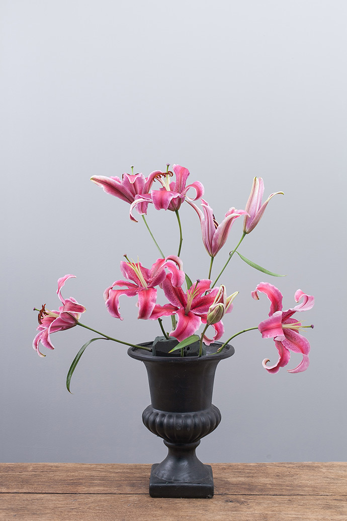 选取百合作为造型的主花材,保留去掉多余的叶子.