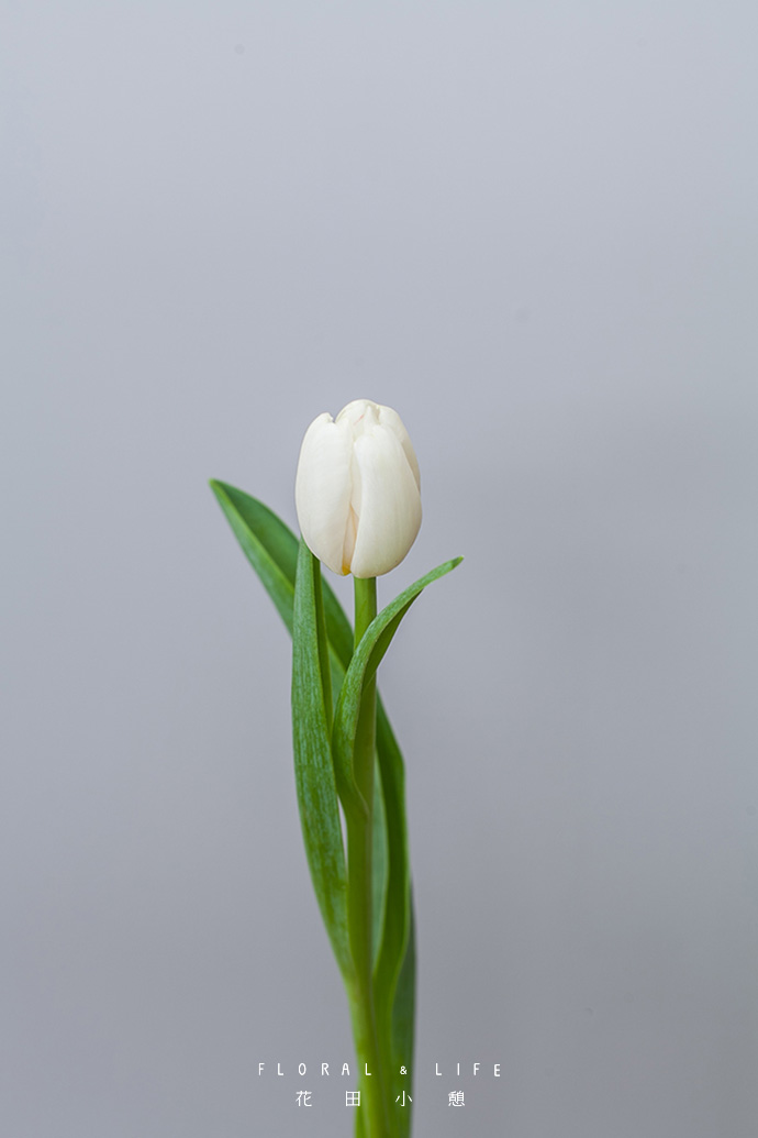 纯白无暇,通透如玉,圆润温婉的花瓣,层层包着裹不住的温柔,这就是白色郁金香,区别于其他各色姐妹的艳丽俏皮,淡淡奶白色的郁金香,带着少女稚气未脱的纯净与羞涩。