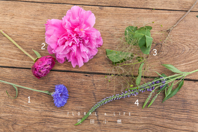 最后,将矢车菊插入其中,