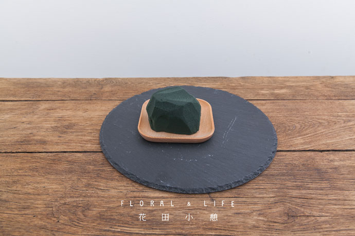 将花泥裁成合适大小放置于托盘中。