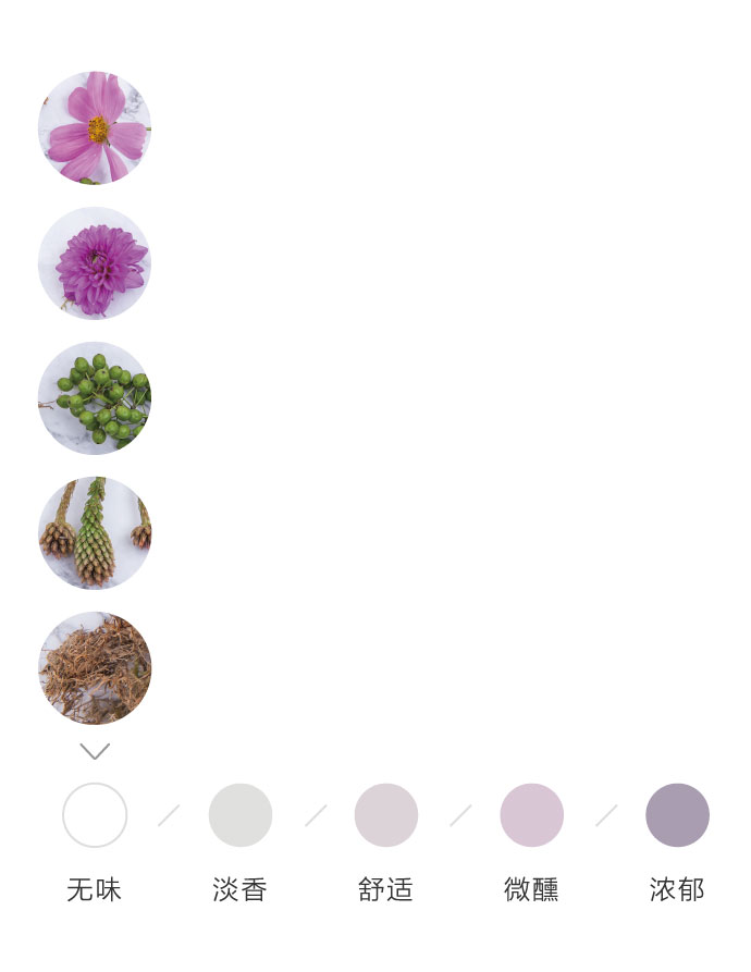 为了方便大家在花材搭配时的选择,花田小憩特设香味等级图谱,供大家在学习过程中了解更多植物的属性,以方便作品选择更适合的空间位置陈列。