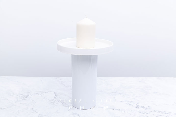 盘子置于花瓶上并将蜡烛摆在盘子中心,选择高花瓶为方便插花操作。