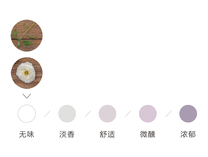 为了方便大家在花材搭配时的选择,花田小憩APP特设香味等级图谱,供大家在学习过程中了解更多植物的属性,以方便作品选择更适合的空间位置陈列。