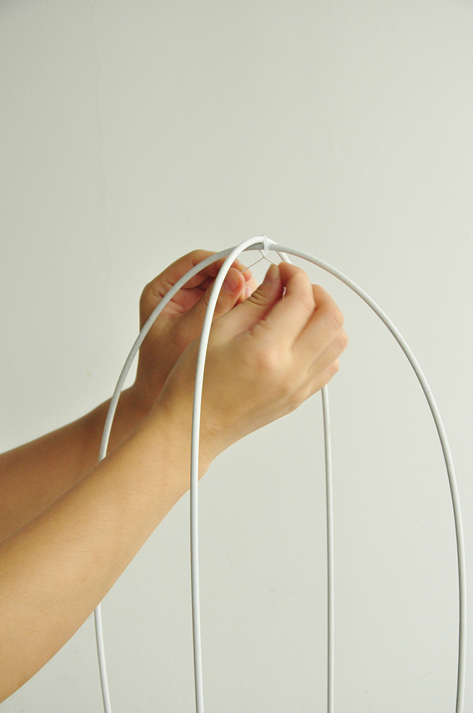 用细铁丝将铁丝顶部交叉的位置扎紧。