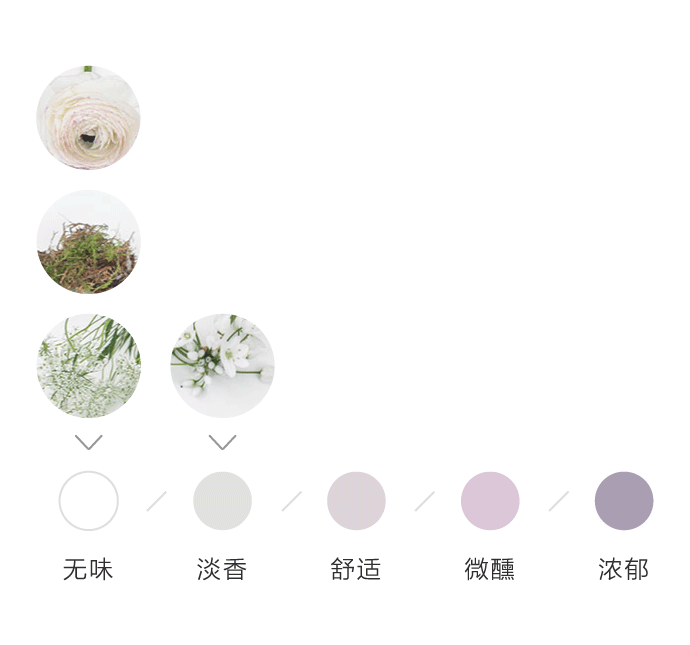 为了方便大家在花材搭配时的选择,花田小憩APP特设香味等级图谱,供大家在学习过程中了解更多植物的属性,以方便作品选择更适合的空间位置陈列。