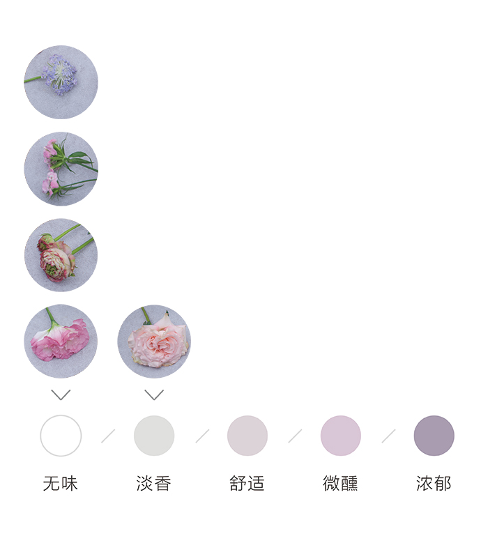 为了方便大家在花材搭配时的选择,花田小憩APP特设香味等级图谱,供大家在学习过程中了解更多植物的属性,以方便作品选择更适合的空间位置陈列。