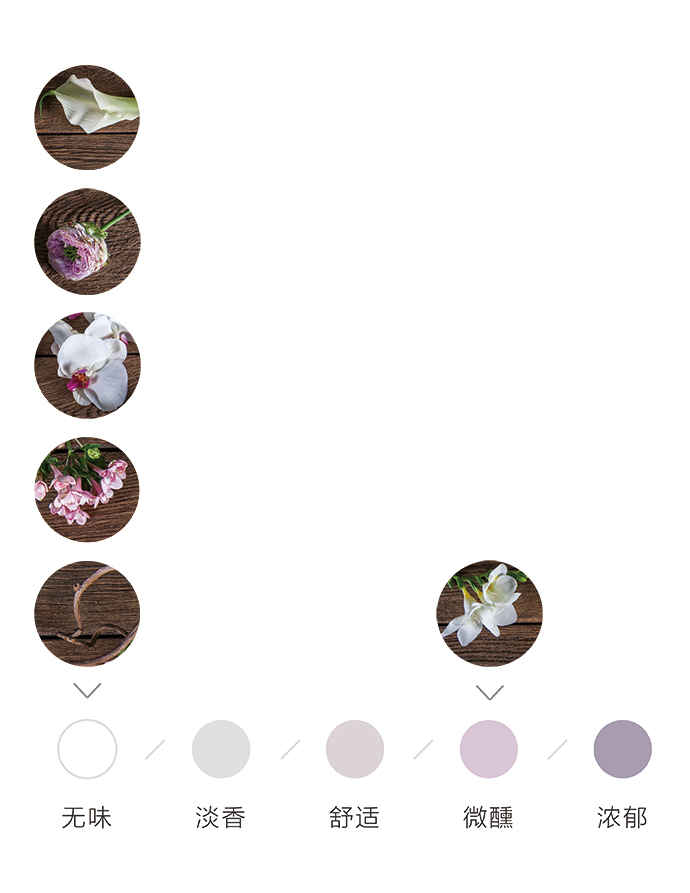 为了方便大家在花材搭配时的选择,花田小憩APP特设香味等级图谱,供大家在学习过程中了解更多植物的属性,以方便作品选择更适合的空间位置陈列。