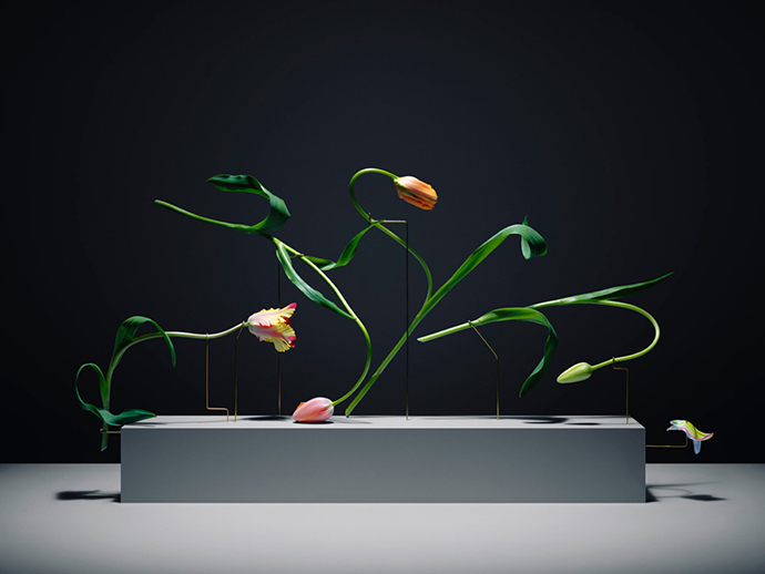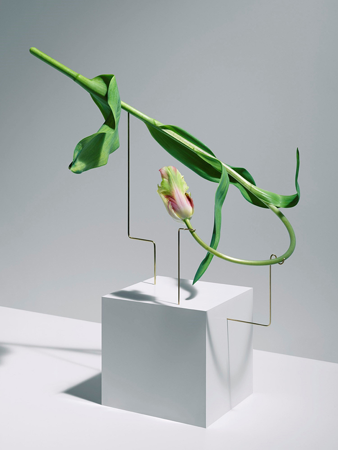 小意达的专栏里曾经介绍过Carl Kleiner与意大利Bloc工作室合作的项目:Posture Vases。这个项目中,花朵被金属线条支撑,花器被简化成一个简单的大理石底座,甚至没有花器,让人能够直接欣赏到花朵的完整形态,尤其强调花茎的线条。
