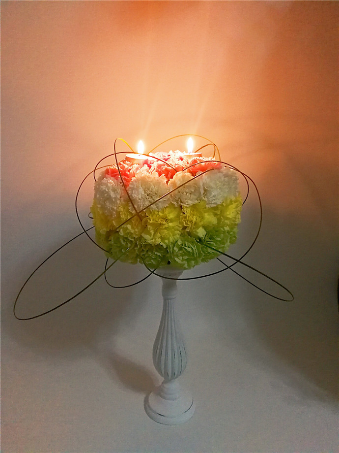同样一把康乃馨,还可以做别致的生日蛋糕,长长的蜡烛跟蛋糕最配哦~