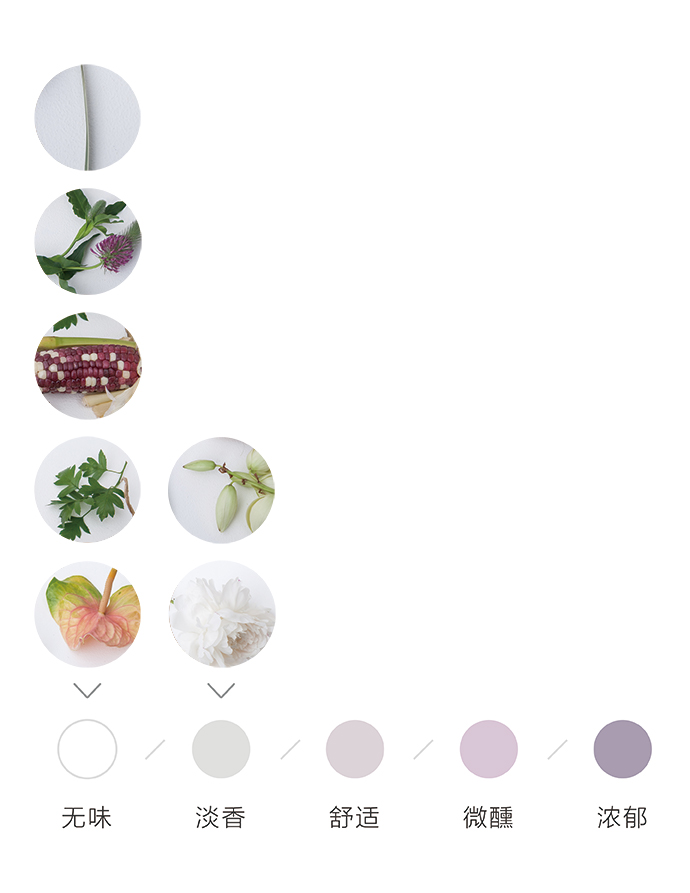为了方便大家在花材搭配时的选择,花田小憩APP特设香味等级图谱,供大家在学习过程中了解更多植物的属性,以方便作品选择更适合的空间位置陈列。