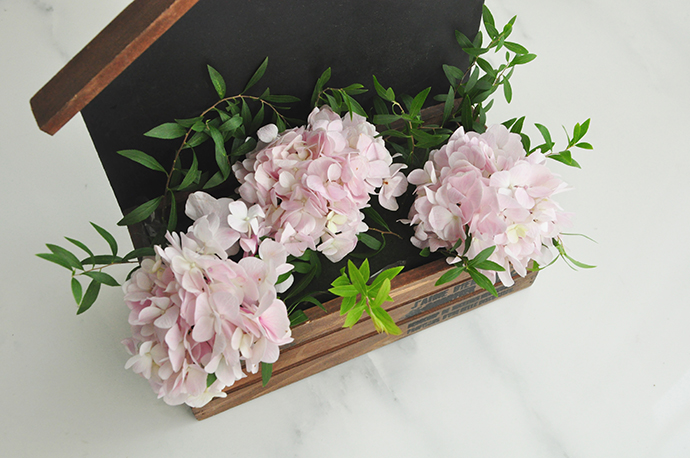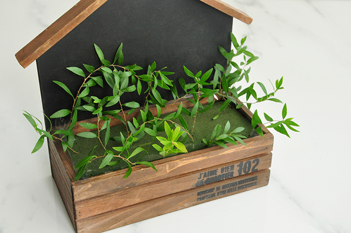 小意达选用了这个带小黑板的花园杂货作为花器。