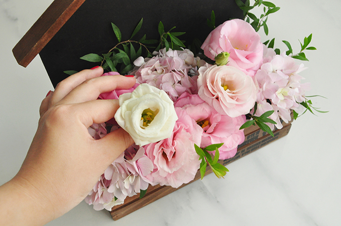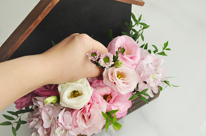 加入一些零碎的浅粉色小菊,做最后的空间填充。