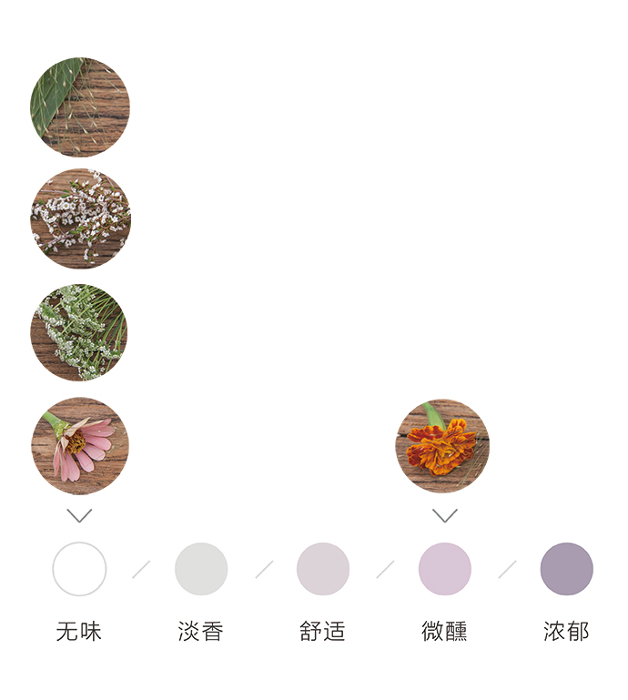 为了方便大家在花材搭配时的选择,花田小憩APP特设香味等级图谱,供大家在学习过程中了解更多植物的属性,以方便作品选择更适合的空间位置陈列。