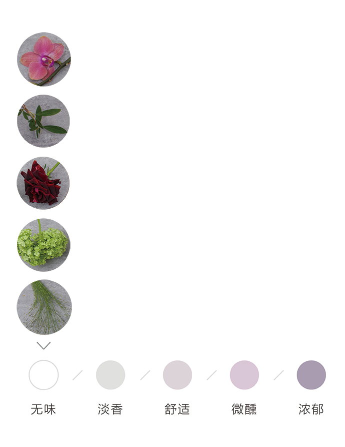 为了方便大家在花材搭配时的选择,花田小憩APP特设香味等级图谱,供大家在学习过程中了解更多植物的属性,以方便作品选择更适合的空间位置陈列。