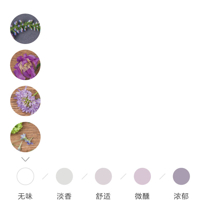 为了方便大家在花材搭配时的选择,花田小憩特设香味等级图谱,供大家在学习过程中了解更多植物的属性,以方便作品选择更适合的空间位置陈列。