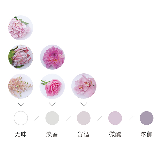 为了方便大家在花材搭配时的选择,花田小憩APP特设香味等级图谱,供大家在学习过程中了解更多植物的属性,以方便作品选择更适合的空间位置陈列。将帝王花握在手心位置,作为花束的主花材。