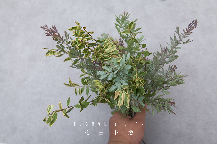 加入金合欢叶子,金合欢是含羞草科金合欢属植物,形态十分可爱。