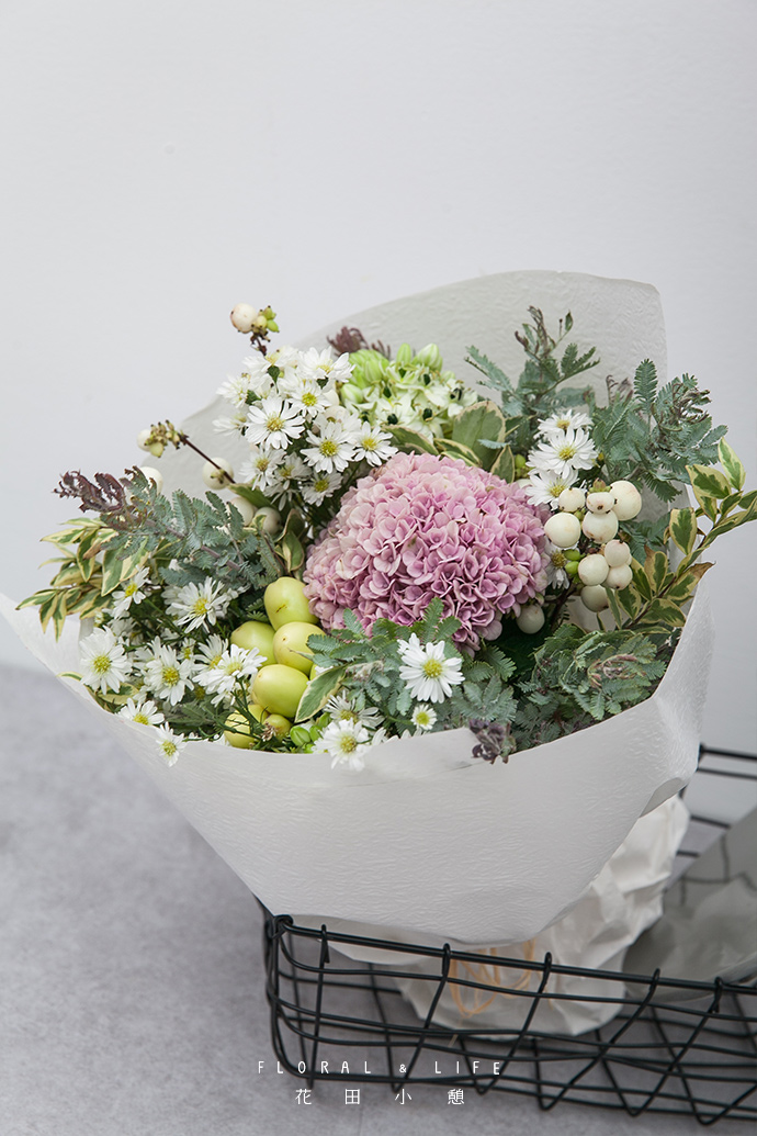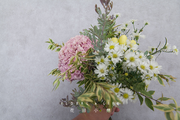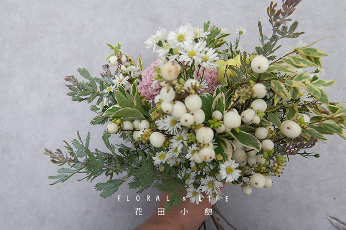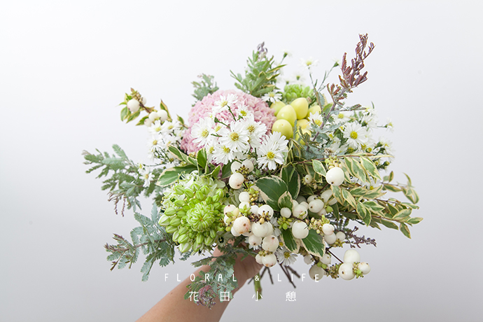作品完成,可以用它来凹造型啦,整束鲜花充满了自然、不羁的自由气息。
