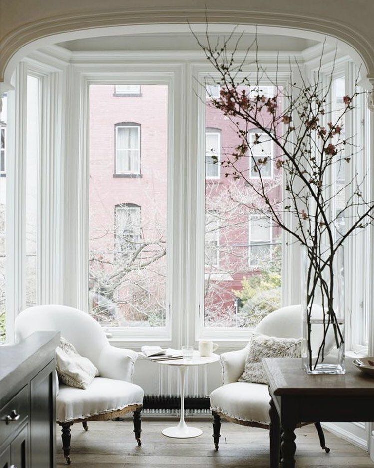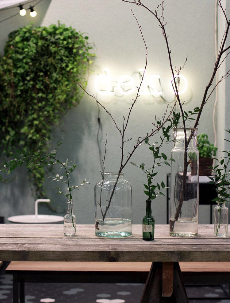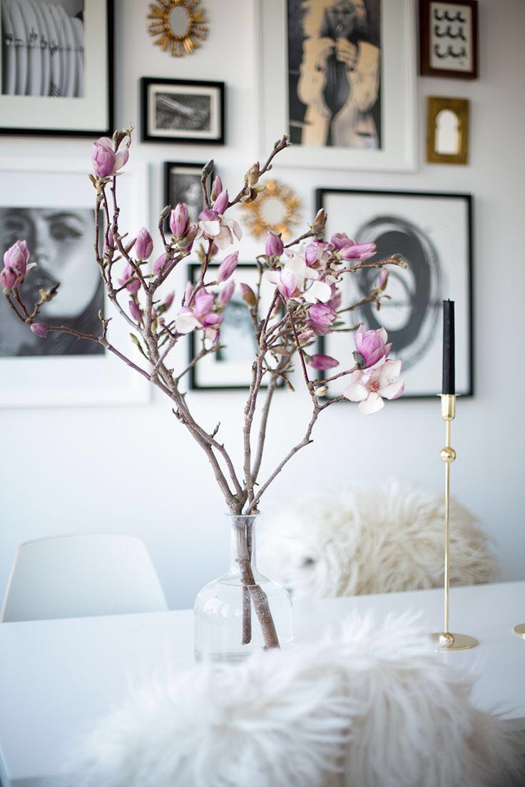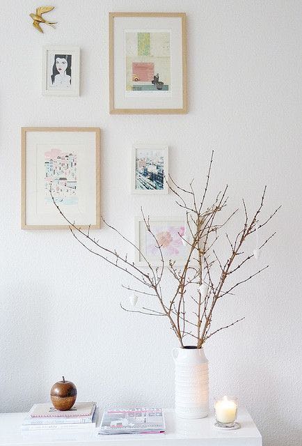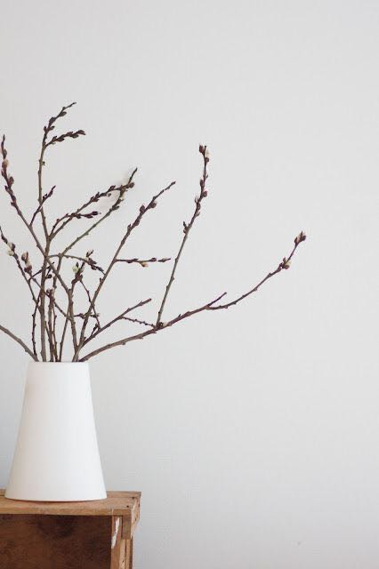 除了冬季的枯树枝,剪一小段春天带嫩芽的小树枝,也非常适合插花。适当的留白能营造出非常非常的高级感。