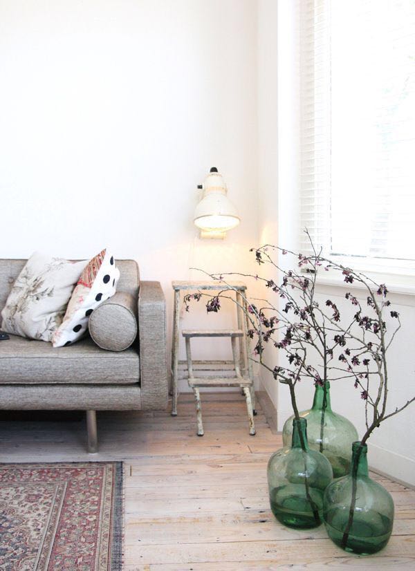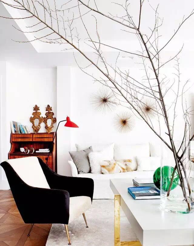 花瓶选择方面:透明玻璃瓶更适合打造性冷淡风的简约家居,而粗糙的陶瓷罐则适合美式自然风的家居。不管是巨型花瓶还是迷你小花瓶,搭配简单几根树枝,都能搭配出不一样的家居style。