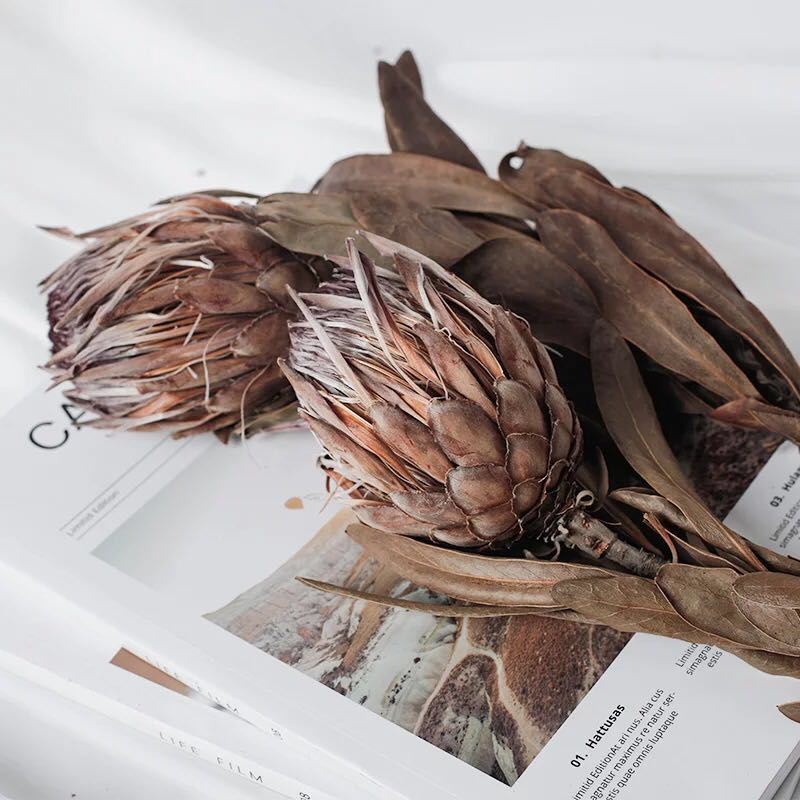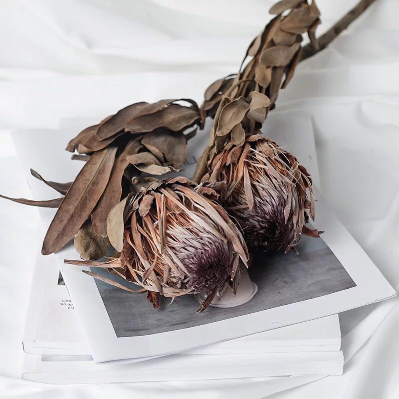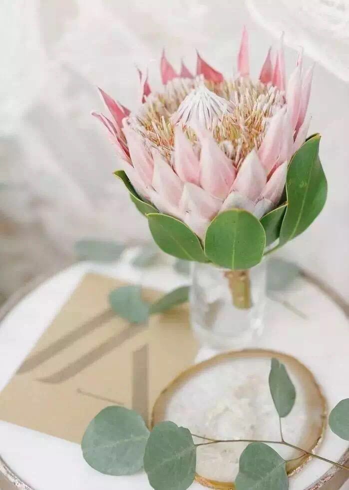 帝王花也叫菩提花,被誉为全世界最富贵华丽的鲜切花,代表着旺盛而顽强的生命力,并象征着胜利、圆满与吉祥。最初来自南非,气候与环境会造会使得帝王花的叶子、花型、颜色以及花期全都产生相应的变化,既能在花园或花盆种植,又可作为优良的鲜切花,还适合制作干花。变干之后的帝王花文艺风十足。