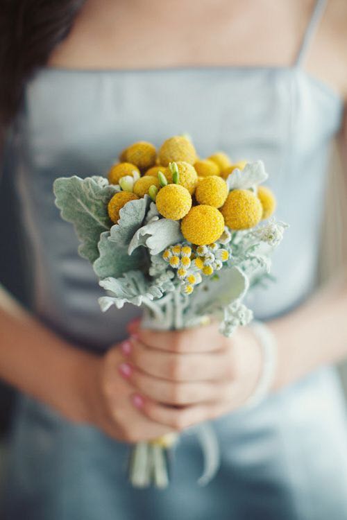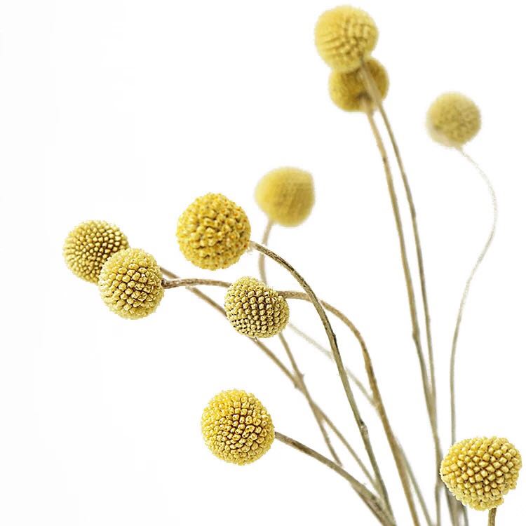 又称“金仗花”,因外形是个可爱的金色小球,因而被称为黄金球,原产澳大利亚,是天然干花的优良花材。因为其圆圆的造型非常讨喜,而且颜色靓丽。也是婚礼中常用的花材,比如:手捧花、桌花装饰、新娘发饰、新郎胸花等等~~放干后色泽不减,非常可爱讨喜。