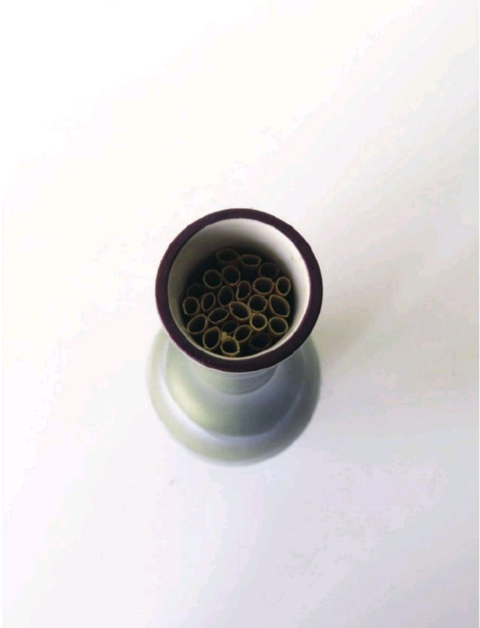 将麦秆插入瓶口中,要不留缝隙塞紧。