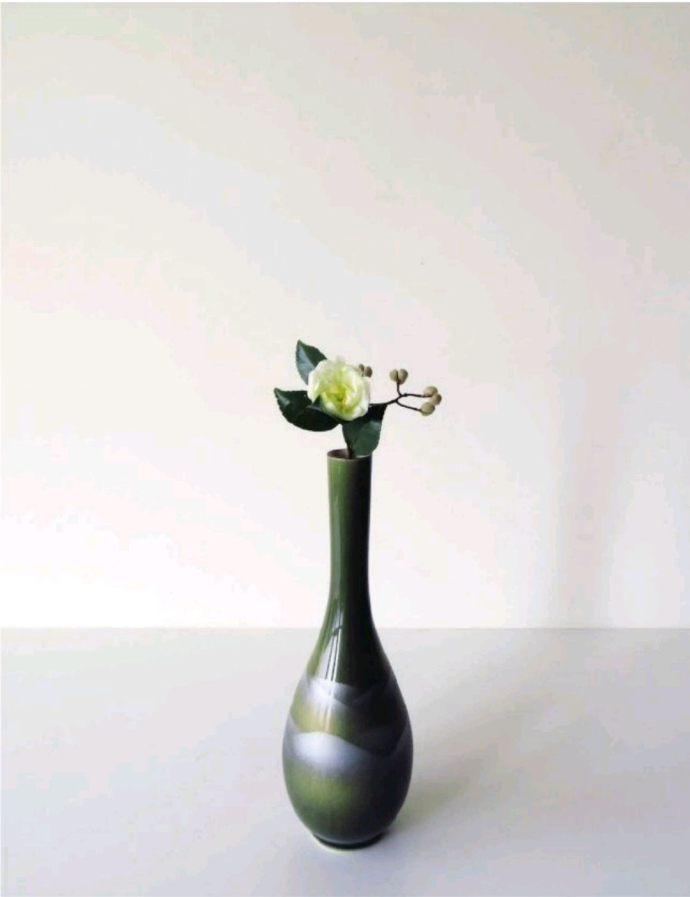 胆瓶由于瓶颈纤细,瓶口小,不能塞入花泥也不能放入剑山,所以瓶花插花对于很多人来说,是件困难的事情,因为花枝一直会动,非常容易产生挫败感。
